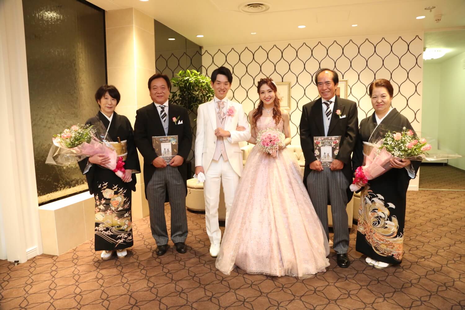 新婦様のドレスはバックのフリルとロングトレーンが印象的で